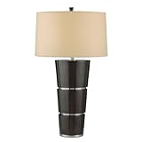 It's bigger than I expected, which is good because I needed a large lamp for the space. The shade had a few marks on it when it was delivered but not enough to make go through the pains of returning. As the other reviews said, it's a very nice piece, modern, masculine. I like the contrasting wood and silver. True to its pictures.Nice masculine lamp, can be used in a for a traditional or contemporary look. It is in my living room along with the matching floor model that I got from another vendor. They get a lot of positive comments.
