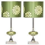 The lamps I received were packed very carefully and in excellent condition. The color of the lampshades is a brighter green than in the picture, but not by much. The lamps are easy to turn on and off, and the flower pattern shows very nicely when lit. They are quite small, so check product dimensions to make sure that's what you want. They are pretty sturdy and don't knock over easily. 40 watt maximum type A bulb.I am so happy with this purchase. They are lovely, the prettiest shade of green. If you can use green lamps in your room, buy them, you won't be sorry.