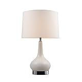 Before buying this lamp definitely take note of the measurements. I bought it for my nightstand and it is a little small. The first lamp I received had permanent creases in the shade and a scratch on the lamp due to poor packaging. I was able to ship it back for free and receive a new lamp that was packaged better. If I had to do things over again I would have purchased a lamp from HomeGoods instead. You can buy a nice nightstand size lamp there for $30-$40. The shade, which is where they obviously cut corners, seems a little too big in proportion to the size of the lamp. The lamp and shade are different shades of white which also looks a bit odd. I also hate the fact that the shade is held in place by the light bulb instead of having a harp and finial. As a result it is not very secure and will move around when turning the light on and off. If I had seen this lamp in person I wouldn't have paid more than $20 for it. Overall a cute lamp, if you are willing to spend more money to replace the shade.