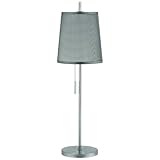 This was a great purchase. Just love the lamp and it's larger two-bulb sibling. The description is misleading the base and shaft are brushed steel, not polished, but the picture reflects the finish accurately. CFL bulb included. Cord is clear/silver. I love this lamp. The service was prompt and I would due business with them again.