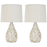 These lamps are beautiful, but everything in the box was broken or damaged. The shades were stuffed inside of one another, and the box must have been smashed at some point, because they both had creases in them. The lamps were in OK shape, but the part were you screw in the lightbulbs were bent as well. The lamp harps were miss-shaped, and the finials were scratched. Certainly not what you would expect if you paid $225 for 2 lamps. Thankfully, amazon has a great return process and really stands behind their products. So be aware, though you might be lucky and get some that are packaged better... if these lamps looked like they did in the photo (not broken), I would be very happy.
