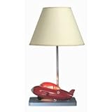 I was looking for an airplane lamp with a night light option. This one fit the bill. The shade was super cheap with ugly, red ribbon on it....not like the one shown in the picture. And it arrived smashed since the box was smashed. However, I found a replacement shade that I like for about $10. The windows of the airplane were clear which made the night light super bright so I painted them a frosty white. Also, the pole is white and curved not silver and straight. I still gave it 4 stars because after I made some changes I love it!This lamp is pretty cute, but it is VERY different compared to the picture. First, there is a line of bright red trim on the top and bottom of the lampshade. This doesn't match the dark maroon red of the plane and isn't shown in the picture. Also, there is a lot of red paint on the windows of the plane. I should be able to scrape it off, but it takes away from the look. I was also disappointed that the "Stick" part of the lamp is white, not silver and curved, not straight. This is one of the only "non-biplane" lamps I could find, and I do like the nightlight feature, but it is different than pictured.