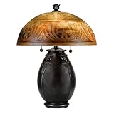 My office is done in Art Nouveau style and I needed a replacement for what was the perfect Art Nouveau amber banker's lamp that I realized wasn't UL-listed after it tried to electrocute me. I didn't think I could find anything in that style that I liked as much, but after a long search I found this one and may even like it better. It's compact enough to use as a desk lamp, and plenty bright enough to read by while still delivering soft, warm light, even with CFL bulbs. One warning: the shade is not nearly as dark or mottled looking as the picture here depicts. In the picture it almost looks like a mica shade, but it is not. When not lit, the shade is an even amber color. When lit, it is lighter (duh), and unlike other reviewers, I wouldn't describe it as "pink" at all, just a lighter amber color accented by the same red-brown color as the base. This lamp is sold by many other online retailers and other sites' pictures more accurately represent the shade's color. I'd look at other sites' pictures first before buying here, since Amazon's price is the the same or lower as other retailers I found.