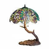 I was so looking forward to getting this lamp, since the shade in the photo is so lovely. In the description it says that its primary colors are green, pink and purple. There was virtually no pink and absolutely no purple to be seen. It was mostly an ugly brown and ugly blue/green colour. The shade is oval and really very ugly. It says it's made of glass, but it feels more like plastic than anything else. Horribly disappointed with this ugly lamp. The tree shaped stand as well was an uglier shade of brown than the photo and looks cheap.