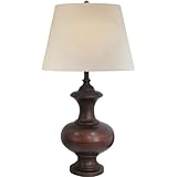 This lamp is perfect for my bronze, glass and wood table. It is true to size (32" tall w/18" diameter shade) and very nice quality. My only regret is that I did not order it sooner. It was properly packaged for shipment and arrived undamaged.