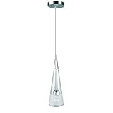 In the picture of this pendant lamp, the cord the lamp hangs from appears completely stiff and straight--which fits the angles of the glass. I assumed it was polished steel--it certainly looks like it. However, the cord is actually a black, kinked, plastic power line, much like one you might have on an appliance. It looks pretty ridiculous and sloppy. If the cord would straighten completely, it might work. However, the kinks and bends look too strong for that. A steel cover for the power line is needed. Until this change is made, don't bother with this lamp.