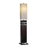 If you are looking nice contemporary lamp this is it. Real wood with a lovely espresso finish, good quality textured cloth (light beige) Very easy to assemble, has it's own dimmer. Do to the cloth don't expect a bright light, it's more for a spot lighting, movie theater, accent type of light so if you want to light up the whole room with a bright light forget it. I use a 100W light bulbs.