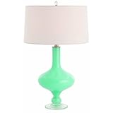 I still really am charmed by good design and after purchasing this cyan blue glass lamp I feel that, at the least, I have a nicely designed glass lamp. The lamp is not a true blue. It has a hint, just a hint though of green in it. The shade emits a muted (not translucent) light. I really like that since I have it in a bedroom. Stylish and colorful I am very happy that I made this purchase. Will be buying another one soon.