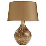 (2) The color is more of a greenish gray than a gold/bronze as depicted on my monitor.In the photograph of the Sanford teardrop glass lamp the color was bronze with a hint of gold. It also had a shine to the lamp's finish. In reality, the lamp base is more gray, no gold or bronze, therefore it does not match the shade. I felt the quality was very poor. The shade is thin and feels like plastic or acrylic and the base has no weight to it and feels flimsy. I will be sending it back. It was very disappointing.