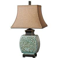 I thought Uttermost was a good brand, but the lamp is crooked on the base and the Ceramic has unfinished edges near the base. I was very dissapointed that it came that way but did not want to go through the hassel of boxing it back up for a return. The color is described as light blue...but it is actually more of a light turquoise. I may try to see if I can loosen the bolt underneath the base and straighten it some, but it still will not be centered. It is a beautiful lamp if it were not for it being crooked on the base.