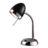 I bought a similar lamp for my desk. It has a goose-neck so can be turned to shine on whatever I want. I tried to find another one for a different room but they stopped making them. I found this one with the stem protruding from the bowl. I believe the stem/handle allows you to position the lamp without your fingers getting hot. The bulb is halogen, which is great light but gets hot. The bowl of the the lamp is metal so it also heats up. I guess the stem is an upgrade. The on/off toggle is on the base. I like the lamp but it does get hot.