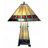 I really enjoy this lamp. I noticed the other review and I disagree with the quality of the lamp. The pieces are made with real stained glass.These lamps are of mediocre quality. Instead of glass, plastic appears to have been used. I wish I had paid more and gotten better-quality lamps.