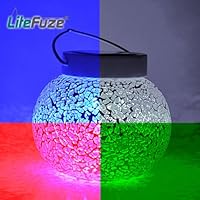 We ordered two of these (blue and green) based on the photo in the advertisement and were not disappointed. The light was even better than the pictures. After experimenting with a LOT of different solar garden lights, we have come to know which ones are really worthwhile and a good value for the money vs. the overpriced/cheaply made ones. The item is roughly the size of a small melon, glass and open at the bottom. We have it sitting on a table, but plan to hang it on a decorative hook. The hanger at the top may be its weak spot as it doesn't look as well made as the rest of the item, but should be adequate. As to long term functioning, time will tell, but I expect it to hold up nicely. All in all, highly recommended.