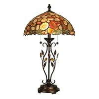 Lamp is very well made, color and lines in the agate stones are beautiful having a rose color when the lights are on. The chain pulls are smooth to pull and do not stick in the on position as others that I have purchased in the past. Design on the body of the lamp is a classic pedal pattern that adds to the classic Tiffany look with color pedals that match the shade!!