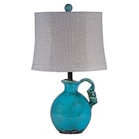 I thought I loved this when i saw it online, but I really fell in love with I put it on the table. The twisted handle on the jug really is what makes it outstanding along with the crackled finish. Great product and if you need turquoise in your decor, get this lamp.