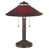 This is a small lamp for a small to medium-sized desk. The mica shade makes it special. The base is painted metal, which looks cheap, but I have found I can live with it. The lamp shade just manages to conceal the bulbs from direct view when seated at your desk, so glare should be minimal. The underside of the shade is white contributing to even lighting. With incandescent bulbs the lamp will treat you to some alarming cracking sounds as the plastic inner shade lining contracts when the bulbs are switched off (due to the heat). No harm is done, however. Otherwise, a great lamp.