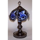 I have to say that I expected alot from this touch lamp. I have owned a larger similar dragon touch lamp for years and have always been very please with it. So I figured purchasing this smaller one was a no brainer. I was wrong.This lamp is just the size I was looking for. So that wasn't a factor in my rating. Nor was the ease of turning it on and off. You can't get much simpler than touching a lamp to operate it. Truthfully these two factors actually made me rate it higher than I would have otherwise. The issues that I have with this lamp are the image of the Blue Dragon and the amount and type of light that the lamp puts off. When the light is off it is rather difficult to tell what the image is suppose to be at all! When the light is on it looks, to me anyways, more like a white winged horse (I am being generous here) than an actual blue dragon. Considering this is described as a Blue Dragon Touch Lamp this is a big problem. Also be warned that since the space surrounding the dragon is black, it affects the brightness of the lamp, which in turn alters the overall ambience that the lamp puts off. Not very cheery or soothing in my opinion but dull and lifeless.