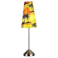 This is a cute lamp and the right size for what we wanted. When you turn it on it gives white light above on the ceiling which I hadn't expected. It also had a dark spot when the bulb was on. I really wanted a blue glow so I went with a desk lamp instead.