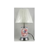 this lamp is very nice however the shade it comes with is rather plain and cheaply made but looks very nice next to the MVP bedding set i have. we just put some yankee stickers on the shade to make it look a little better