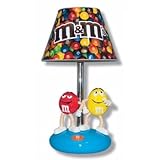 I purchased this lamp for my 5 year old's bedroom that is decorated in an "m&m" theme. Not realizing it at the time of purchase, when I got the light it operates from one large red button located on the front of the lamp. The first push illuminates the watt bulb you install and the second push operates a dim light factory installed inside the red & yellow characters to give you a "night light" option. Very cool! Lamp shade is a firm plastic, not fabric like I thought when I bought it but still coordinates in the bedroom beautifully.