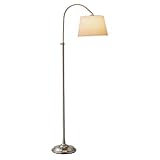 The ability to adjust the height and angle of the shade are important with this lamp because the CFL bulb (not included) is as long as the shade. It is uncomfortable to use, like having a flashlight shined in your eyes. I like the looks and design so I kept it, will look for a longer shade.I wanted a lamp that would compliment a floor lamp that I already had. this one works. The shade was whiter than I would prefer, but will work for now. Assembly was easy.