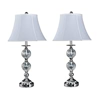 I expected the circle balls to be more glass like but it looks more plasticky. Still pretty and chic. Nickel base is expensive looking. Nice with white nigh stands on both sides of bed.
