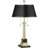 Sturdy, well made traditional lamp. Works best on a larger executive desk. The height would overwhelm a smaller desk. The black shade has a gold reflective inner lining. A lower watt bulb works best as high watt bulbs cause a blinding reflection when seated at the desk.Strongly recommend if you're looking for a lamp for a traditional office.
