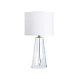 I just received my lamp from Amazon. It is very tall but not bulky looking due to being able to see through. I love the lamp and mine is definitely glass not acrylic. It is very light and fragile looking but looks lovely and the shade is very nice too. I am very pleased with the item.The seller description of this product is misleading. It says "glass finish", which, together with the photograph, and the $126 price tag, would lead one to believe that the base is made out of glass. The base is instead made out of very lightweight acrylic. I understood I had been had when the packages arrived and each box weighed no more than 3lbs. Sceptical that a big box with a glass lamp inside would weigh only 3lbs, I opened one very carefully, and sure enough---found it to be made out of cheap plastic. Shame on the seller. However Amazon is the best! They promptly took it back.
