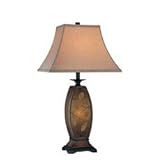 This is not for modern/contemporary steel decor. It is a sleek pretty design with a medium to med-light painted metal base. Front and back faces are a tinted pretty glass with hand painted leaf motif. This is the area that houses the "Christmas bulb-7watt bulb. Glows lovely at night. The switch is 3-way; 1st the night light, 2nd night light and full lamp light, 3rd just the full lamp light. Yes, I would buy this again! I have this sitting on a dark brown wood bedside table.