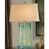 My daughter-in-law had a pair of these lamps in her living room. I thought they were beautiful! A few months later, I was doing a remodeling project and asked if she would mind if I bought the same lamp. She was flattered and gave me the OK. They are not as aqua as pictured, but since I had seen the, I knew what I was buying. Love it!