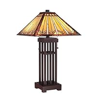 I am very disappointed in this lamp. The shade looks like something you would find at a discount store. It is described as glass with copper foil leading. In actuality, the 'glass' appears to be plastic with some messy plastic joining compound that is very unevenly applied around irregularly cut pieces one of which is cracked. As a craftsperson who has made many copper foiled stained glass windows, I find the quality of this lamp completely unacceptable and I will be returning it.Best Deals for Quoizel TF1137T Tanner 2 Light Tiffany Table Lamp