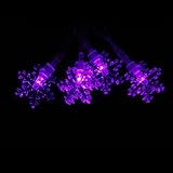 Great price ~ should have bought more! I'm still using these lights on my outside patio Christmas Tree ~ through rain & cold. The color is a beautiful shade of purple~blue light; very pleasing to the eye. During the day the thick plastic snowflakes glitter in the sun.I had to replace the batteries one time because I forgot to turn them off during the day ~ oops! I would remind the purchaser to be sure & slip a plastic bag over the battery box if rain is expected. I didn't do that once so I had to carefully dry the box out. There was no harm done as they lit up as brightly as before!