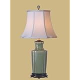 The lamp arrived late, but it only missed the due date by a couple of days. No problem there. The lamp itself is actually a much darker color than appears in the picture. The color is more jade and celadon. I had to shift a few things around but made the color work in my living room. The style of the lamp is lovely. Again it appears much lighter in scale than it does in the picture. Because of that it fit my space much better. The detail on the shade balances the simplicity of the lamp base. When shipped the lamp shade was packed separately so be aware the shipment comes in 2 boxes.