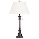 I recently purchased this lamp for my living room, as a wedding present to my husband and myself. The first shipment was missing parts, and as always, Amazon had a new one out to me in two days.The lamp is simple yet elegant. The shade looks beautiful with the lamp on or off and the bronze color, which is what we picked, is a deep dark bronze with hints of copper. We absolutely love this lamp.