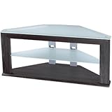 Our guest room still had a 1980's model television armour, a big ugly thing that was so dated it was embarrassing. The room had an empty corner that was the perfect spot for a large tv.This was a nice simple solution. It is unobtrusive and practical and holds a 42 inch television nicely. I would not recommend any larger television for this or it's not only going to overwhelm this tv stand, but the set will be too wide to fit into the 90 degree corner of a room. This is attractive and I like the frosted glass shelves. Although this is almost four feet wide across the front edge, the glass shelves lighten the whole thing up consisderably and make it less obtrusive than if it had solid shelves.