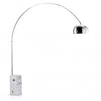 Ok so it's hard not to love Castiglioni's design for the Flos Arco. It's a classic. When I ordered the Kardiel I was skeptical. I hate knockoffs. But I also hate ripoffs! and paying $2900 for a Flos Arco just didn't sit right. It's just a lamp! The Kardiel is an amazing replica. The marble base weights 140lbs and it's a nice cut. It has done wonders to dress up my living area.So the question for you is do you believe in paying $2400 extra just for a brand? Or do you want a high quality stainless steel and marble replica that works the same at a price that is much closer to its *true* cost. My only beef could be that they recommend using a 60W bulb would be nice to put in 100W.