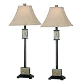 Product arrived very promptly, packaged well, and was exactly what I was hoping for. Good quality slate pieces match my slate tile tables well. Shades are actually a nice microfiber texture, better quality than I had expected.the lamps match my table. the lighting is perfect. I would recommend this product to anyone looking for accent lighting.