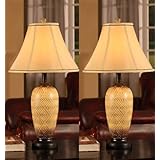 These are pretty lamps but smaller then I expected although the dimensions are given in the description. I wasn't expecting the lamp shades to be collapseable but they were fairly easy to assemble and pretty. I wanted lamps with a little color that would go with any color decor and these fit that perfectly. I like the 3 way switch also.Best Deals for King's Brand L2604 Fabric Shade Table Lamps, Brushed Ivory finish