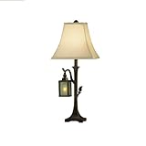 Don't get me wrong, i LOVE the lamp!!! It is quite unique (with that adorable little lantern deal) and is perfect in my little stone house, or for those who enjoy just a touch of whimsy. The finish is pretty, but I didn't really see any resemblance to "bark"... or maybe I got that confused with the lamp that looks like tree limbs (also a Kichler lamp, in the same Woodlands Collection.) To me, the finish seems like kind of an "oil-rubbed bronze" but not quite that dark. It's just paint, folks. No moss or lichen growing, no mushrooms cropping up next to it (yet.) I don't think it resembles a tree, or anything else growing outside. In retrospect, I am not sure what I was expecting. I was just sooooo enchanted with the "lantern", I guess I just thought the lamp was going to transport me back to childhood or something. And on that note, I expected it to be biGGer. But, again I think this was a psychological issue; the lamp measures as described. I love that you can turn it on 3 ways just the little lantern, the lantern and the lamp, or just the lamp. I have just a little white "night light" in the lantern, but for even more "whimsy" a green (or any coloured light) might be fun. I REALLY appreciate having the "turn on/off" knob actually ON the lamp, and not on the cord (cheesy.) The shade is VERY nice, both colour and fabric. It's satin-ish, as described...& "oyster." (NOT "cream" like lots of cheap shades.) Actually the lamp is as described, and I DID get that "shopper's shiver" of delight when I finally got it out of the box(es). I think I was just expecting a Disneyland Experience. Everyone (well, girlfriends only, really) who had visited since I got it has said "Oooh, Cute!!". Oh, also, the lantern does not come off, it's wired to the lamp, but not obviously. Yeah, I love it. I would have loved it a little more if it had been about $100.00I LOVE what these two lamps do to my living room! When I'm no in there, the little lantern lights give a wonderful ambience. During the day when they are off, their simple beauty makes the room special. And in the evening when I'm enjoying reading time they are so welcoming. I always look for something unusual, different from ordinary. And I found exactly that with these lamps. Looked at hundreds on the internet until I found them. Always find what I'm looking for on Amazon! Thanks guys.