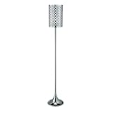 This lamp was a little more outrageous than I was looking for, but now it's really grown on me. I love it.The lamp base and pole are polished chrome. Very flashy and modern looking. The shade is also polished chrome with many plastic crystal beads. It's an extremely unique lamp and looks more expensive than it is.