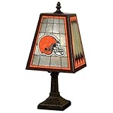 It slighty differnt than the pic shown but better. On the sides that have the helmet it also say Cleveland Browns and on the sides that show nothing in the pic, its has the NFL logo! I thought the shade would feel heavier because it says it glass but it feels lighter more like plastic. But it may just be a type of glass. The edging of the hade is metal so it still has some weight. My man is a die-hard brows fan and he loved it! He really liked that it had the NFL logo on it!