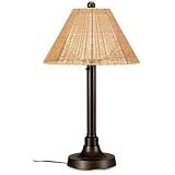 This lamp is a beautiful piece of decor. It is a substantial piece. It goes perfect with my outdoor decor. I absolutely love it.I would definitely recommend this to all Amazon customersThe lamp met more than our expectations. It has a 10 foot heavy duty cord, globe that keeps it dry, and two level lighting. The natural wicker shade allows for mood lighting or reading lighting. It has a heavy base to keep it from blowing over and it really goes well with our dark wicker furniture.