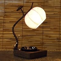 a very small lamp giving out a very large attitude of calm! ..just love this little peice of light on my desk...it comes on and brings such peace after all the busy-ness of work is done...wish I had found it years ago! would recommend to anyone who whould like an instant desk changer at the click of a switch... nice~!The lamp is a night light it is only 8 inches tall. The dish you see in the picture does not come with the lamp. It does make a nice night light, but it is not a table lamp.